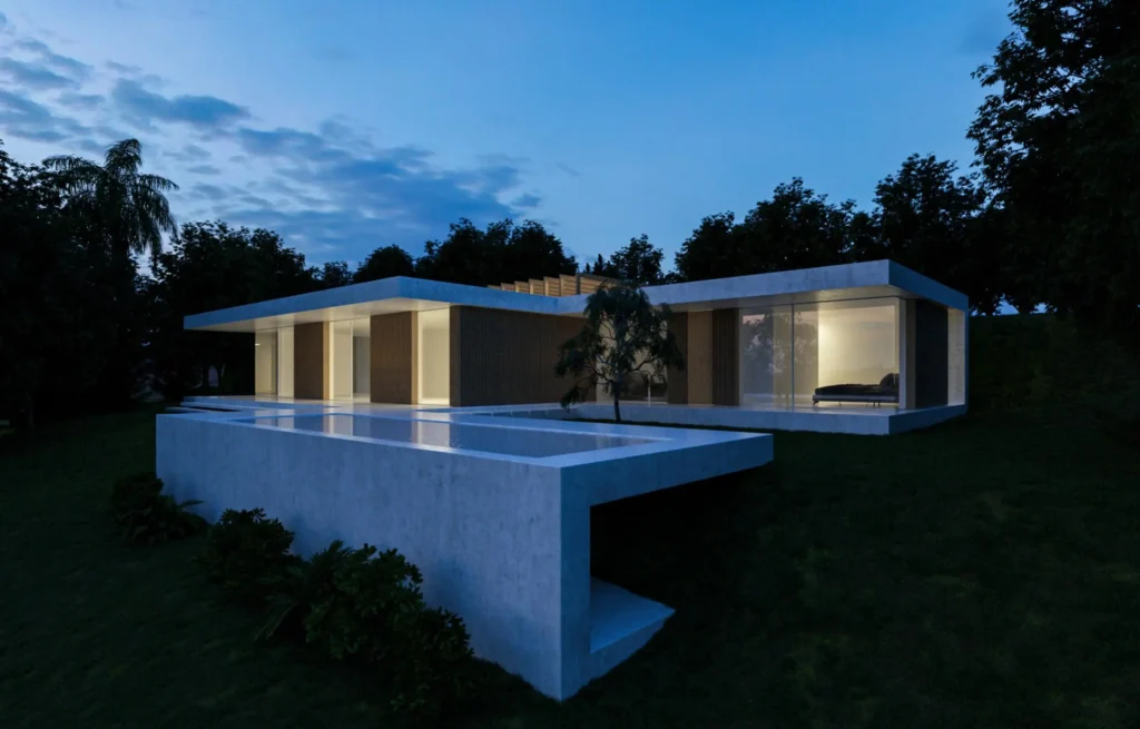 The size of the plot allows for a considerable amount of green space for gardens to surround the property. The plot is slightly sloped with a private road providing access to the plot, meaning that access is comfortable and easy.