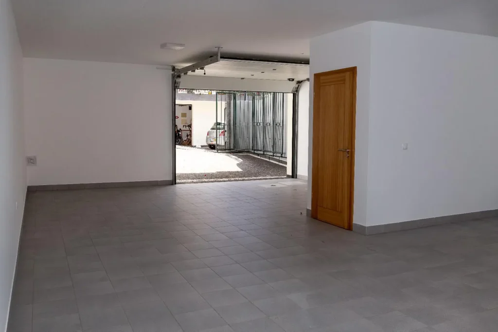 Starting at the garage level, there is a sliding iron gate for the garage entrance, the garage entrance is via an electric gate with remote control. Inside the garage there is parking for at least 3 cars, ample storage areas and a small WC. This lower level is where the laundry and drying room is located. There are stairs leading to the living area.