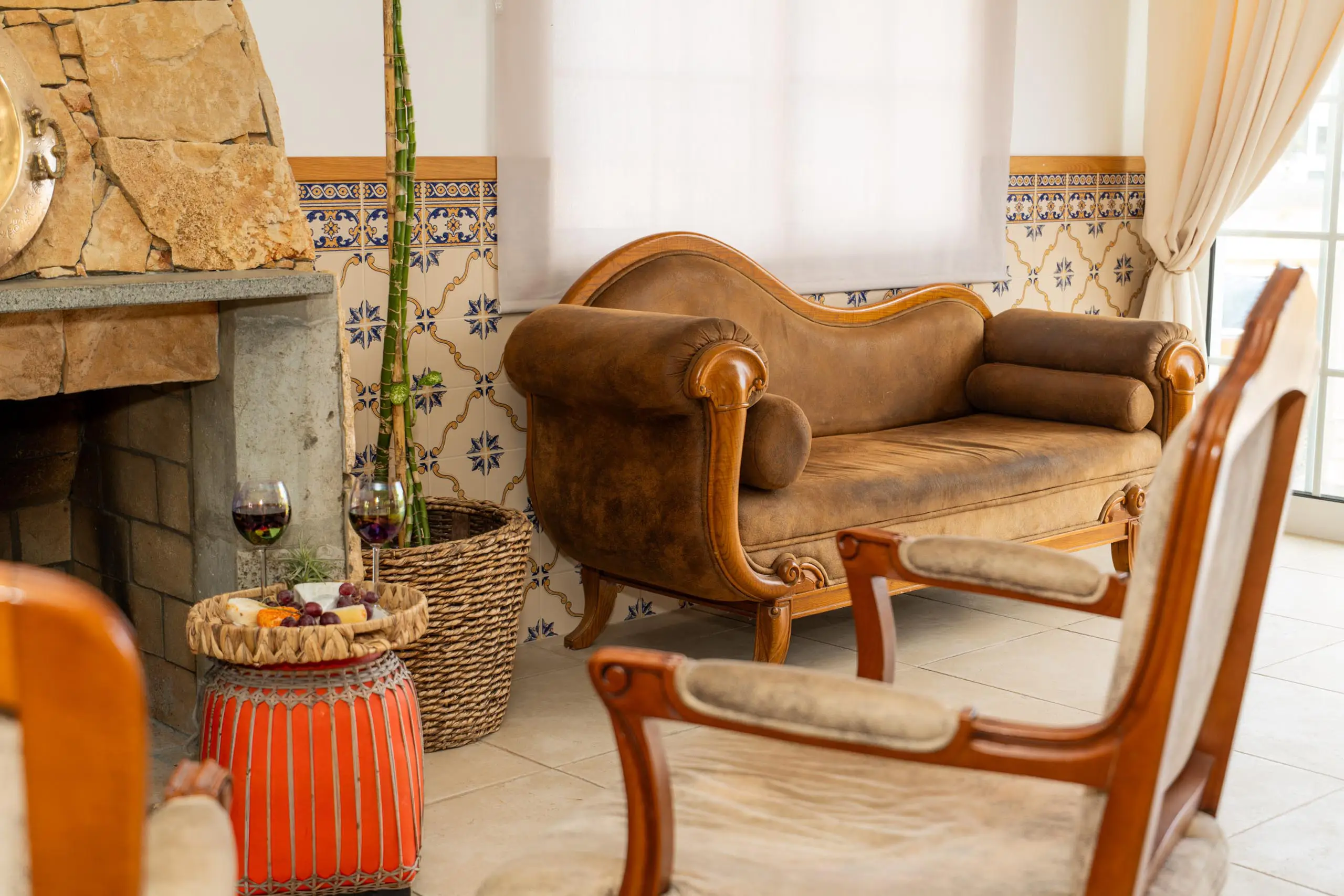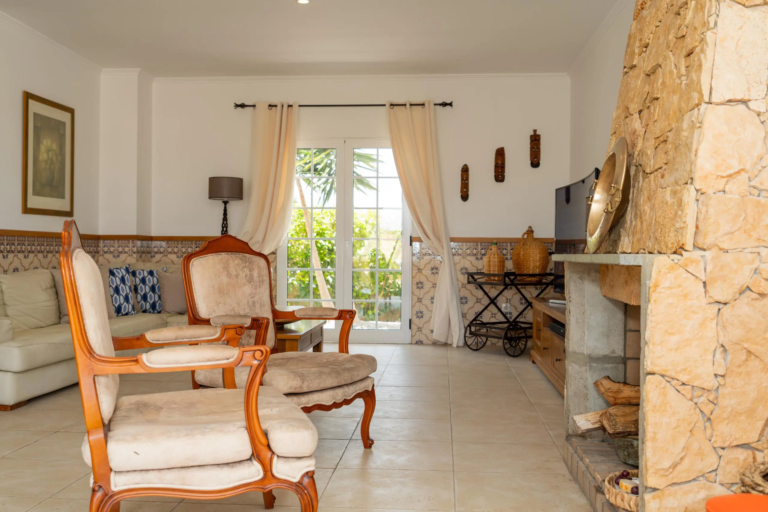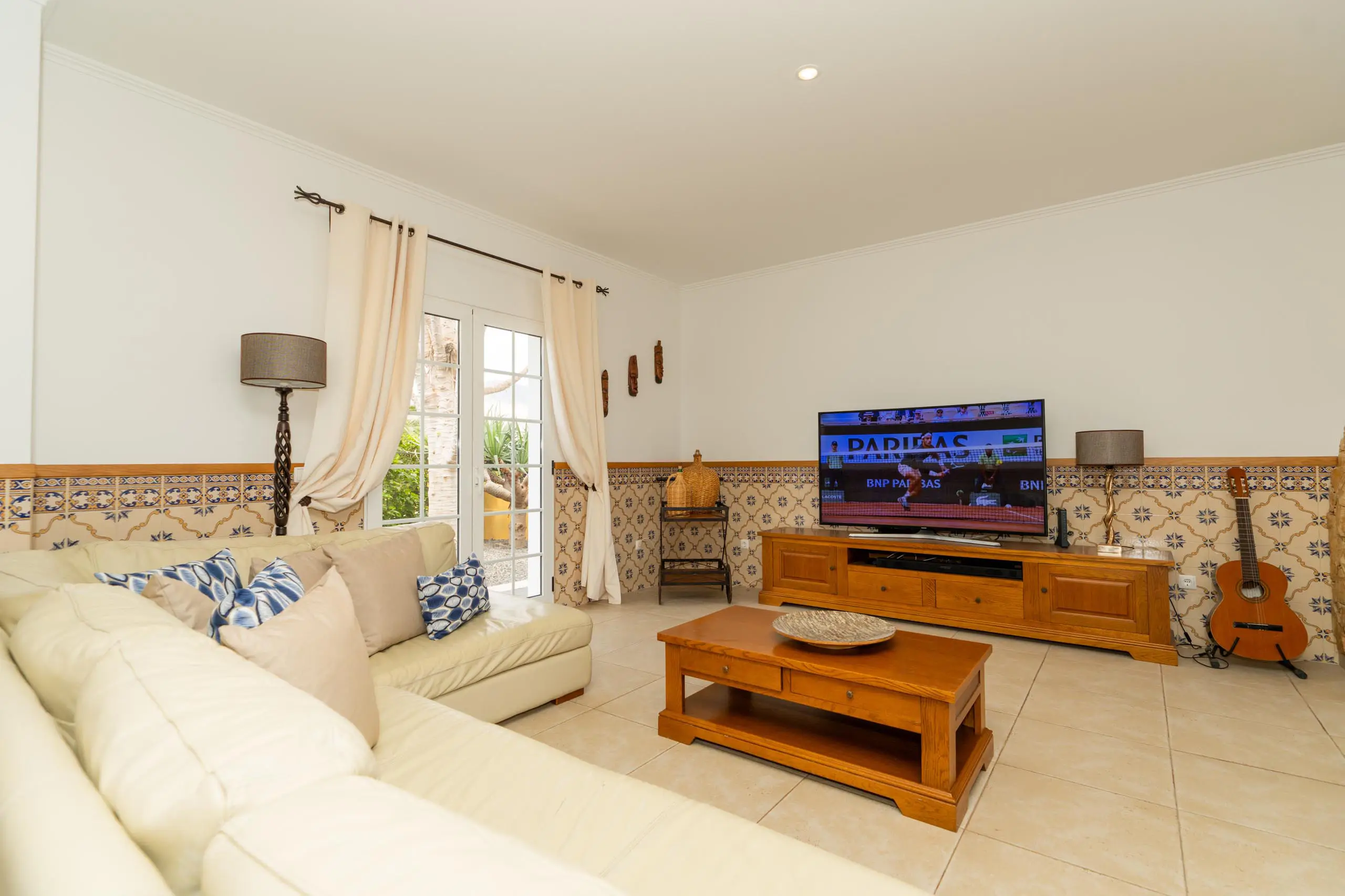 The lounge area features plush, comfortable seating arranged for conversation and connection with soft lighting adding depth and coziness. Large windows and sliding doors are a big feature of the property bringing natural light during the day.