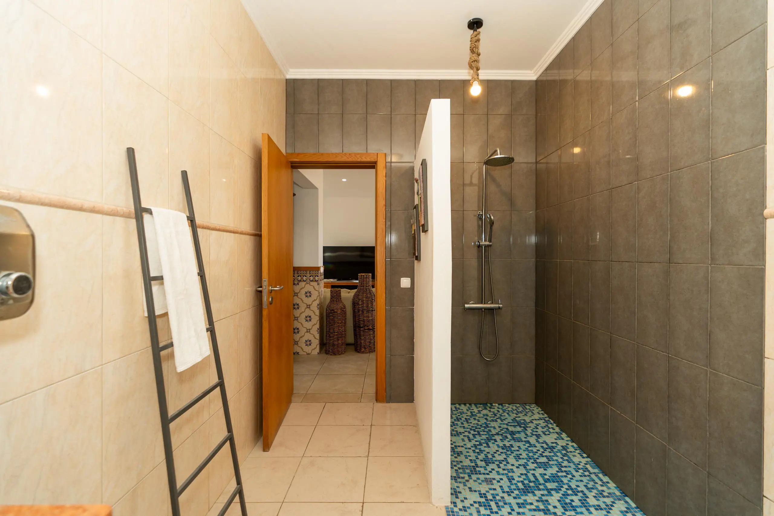 Adjacent to the lounge area there is a large downstairs service bathroom featuring a shower finished in the style of the house.